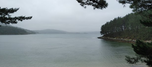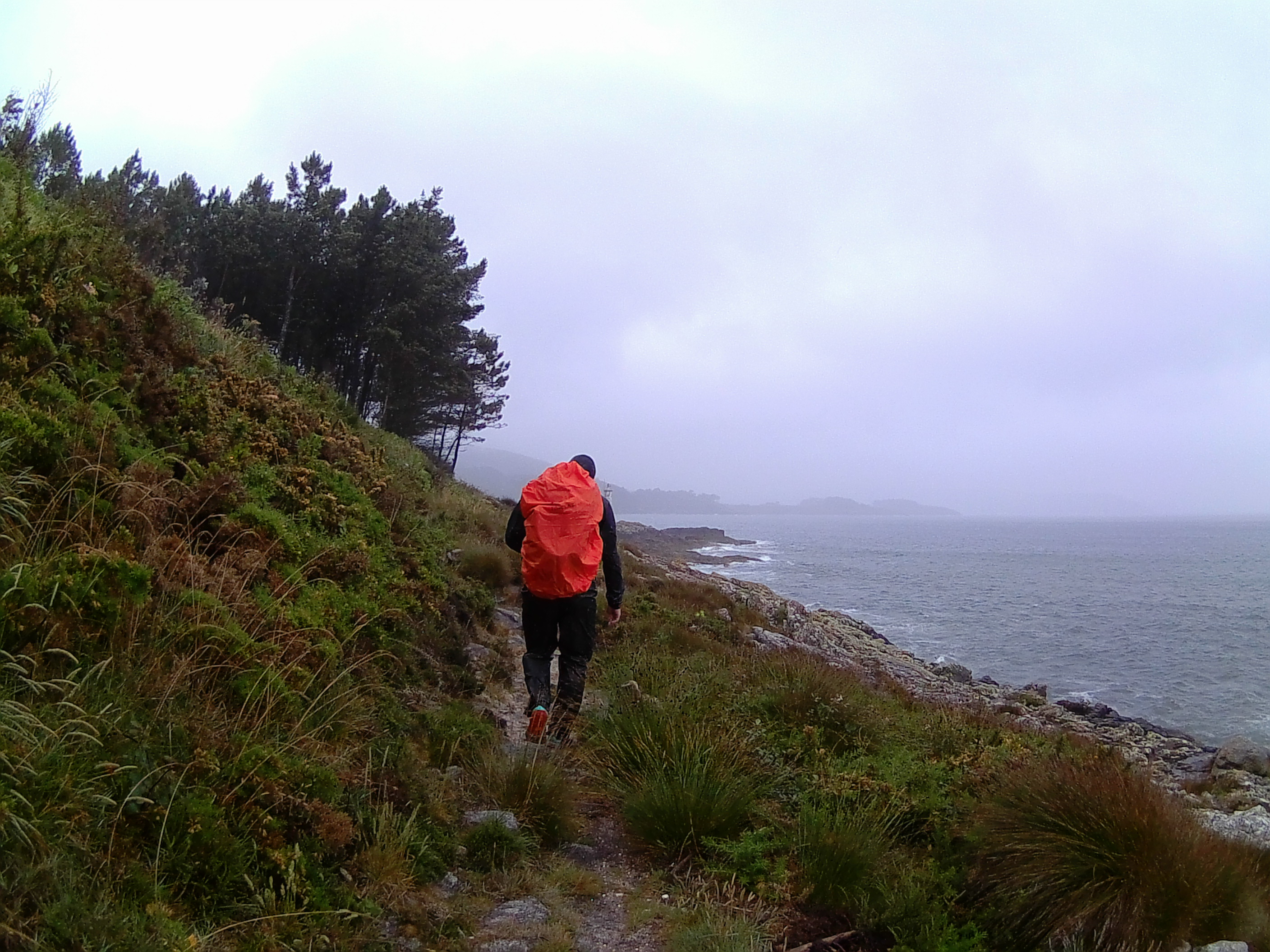 La etapa larga del viaje, la etapa con peor clima… toda la Ría de Camariñas esperándote y toda el agua pa ti. Pero claro, yo me había llevado el poncho para algo!