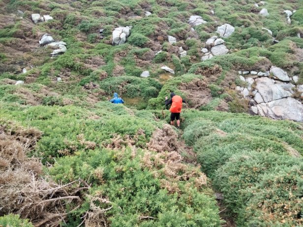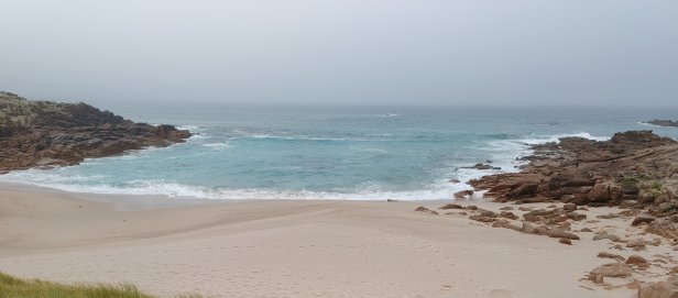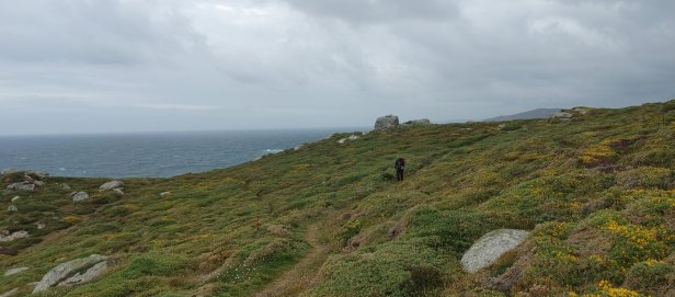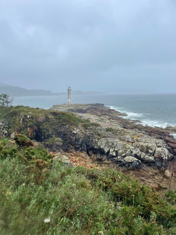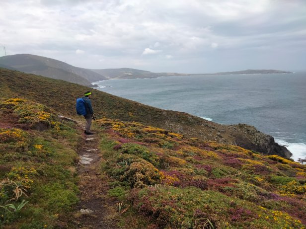 Etapa dura, que se te hace larga, y que cuando llegas al Faro Touriñan, empezando otra vez a llover, no te hace mucha gracia el recorrido del sendero que lo rodea, porque entre el viento y los toxos solo quieres acabar y coger al que se le ocurrió el rodeo y decirle que es «un tipo muy majo».