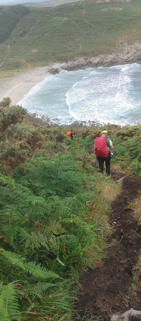 Una de las etapas más bonitas, acantilados y playas siguiendo una senda difícil de encontrar con la mirada.