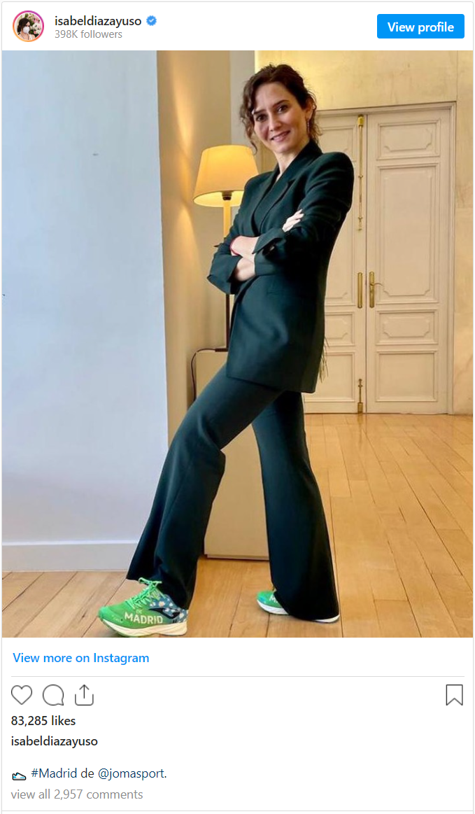 Lo de que Joma haya hecho frontrunner a Isabel Díaz Ayuso no sé muy bien como tomármelo, pero desde luego, desde que me dejaron entrar a la presentación de las las zapas de Swarovsky no me tomo nada de Joma muy en serio. Por cierto, las zapas, que son las de la media, ya lo dije en su momento… me parecen una tontada más. Ayuso como influencer me pega más con Asics u On Runnning, pero esa es otra historia.